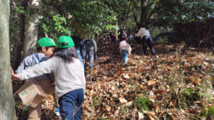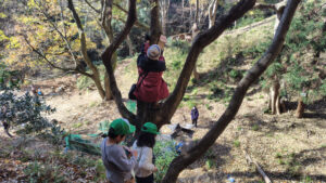 落ち葉に埋もれて遊ぶ隊員もいました。