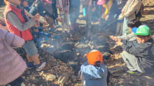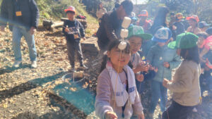 たき火で温めて食べる焼きマシュマロの味は最高でした!